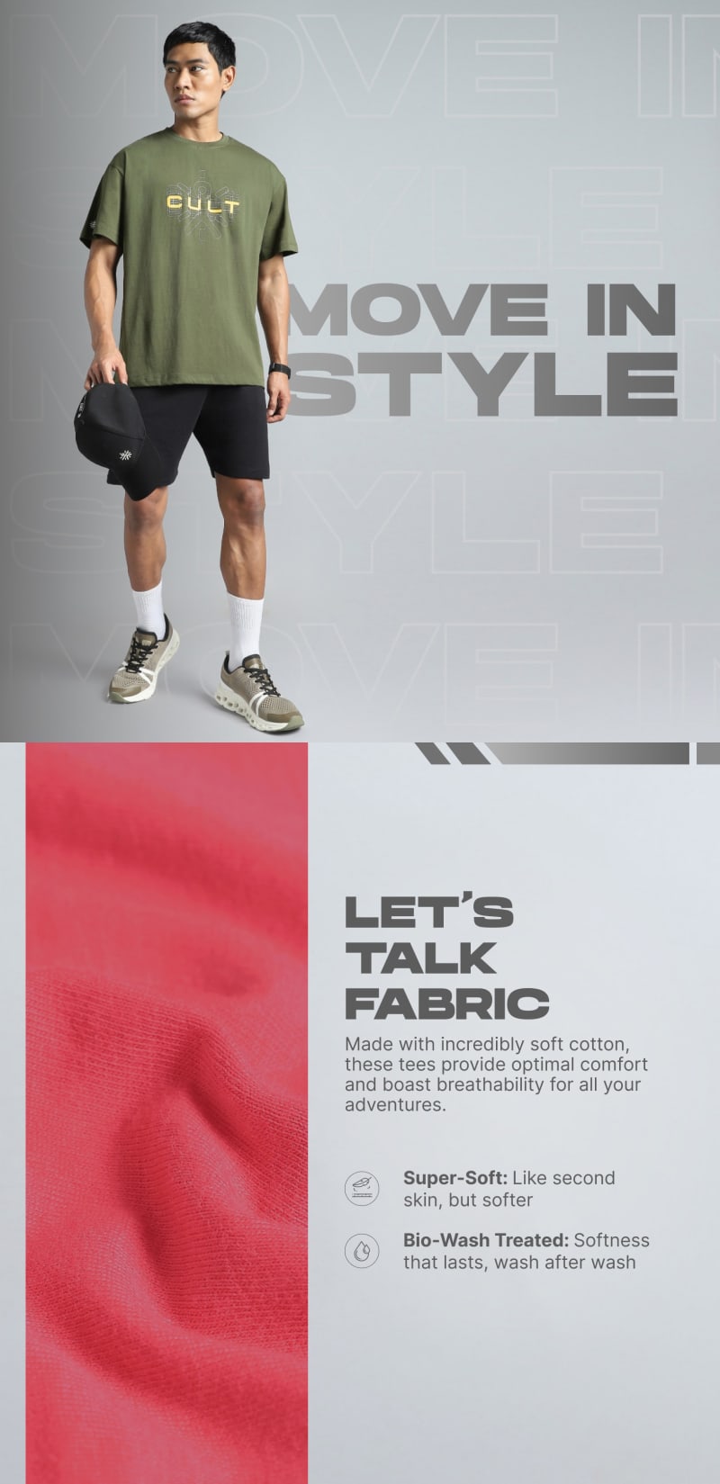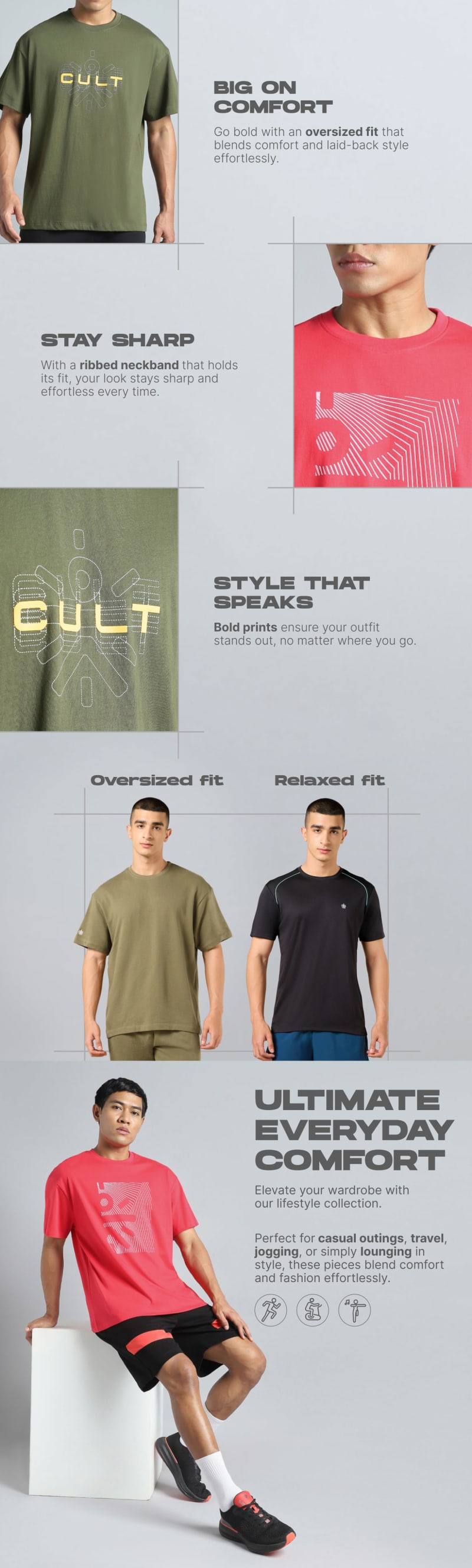 Own the vibe in the Men's Red Cult Branding Graphic T-shirt. The super soft fabric keeps you comfortable from lazy mornings to late-night hangouts. The ribbed neckband offers a secure fit that stays in shape, while the crew neck delivers a relaxed, no-fuss finish to your everyday look. The bold graphic prints bring the personality—perfect for standing out without trying too hard.