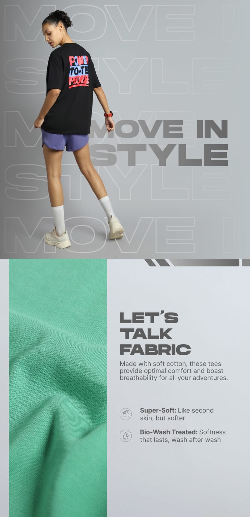 Make your statement in style with the Women's Black Oversized Back Print Graphic T-shirt. Crafted from super-soft fabric, it feels smooth, breathable, and is made for all-day comfort. The ribbed neckband adds a neat finish, while the oversized fit keeps things roomy & casual. The bold puff print delivers a bold look that turns heads wherever you go.