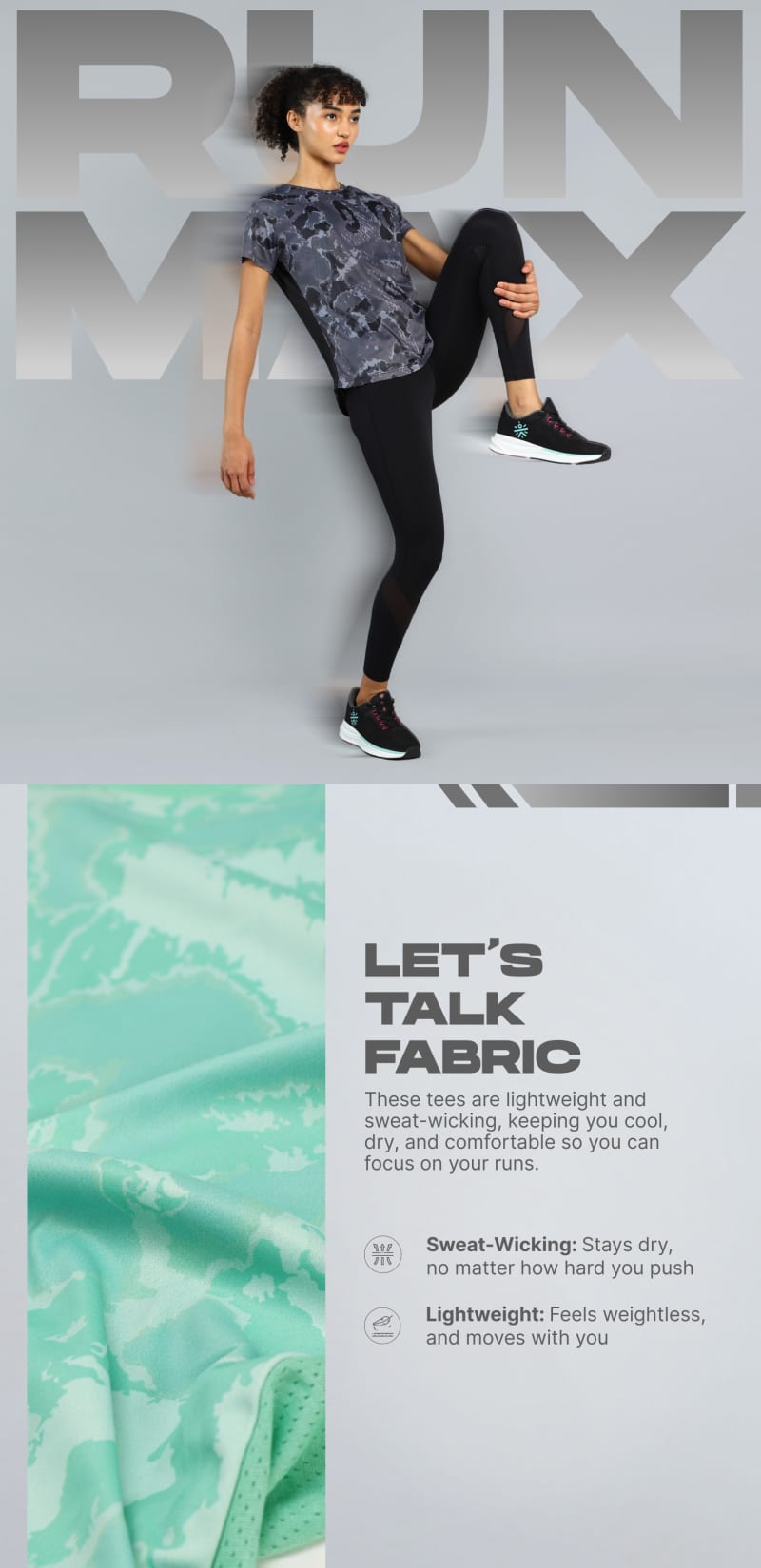 Breeze through every run in the Women's Black Pacer AOP Top. Designed with FLY-DRY™ tech, it wicks sweat away to keep you cool and dry from start to finish. The lightweight fabric keeps things airy as you push the pace. The breathable panel enhances ventilation for all-day comfort. The curved hem adds easy movement and coverage.