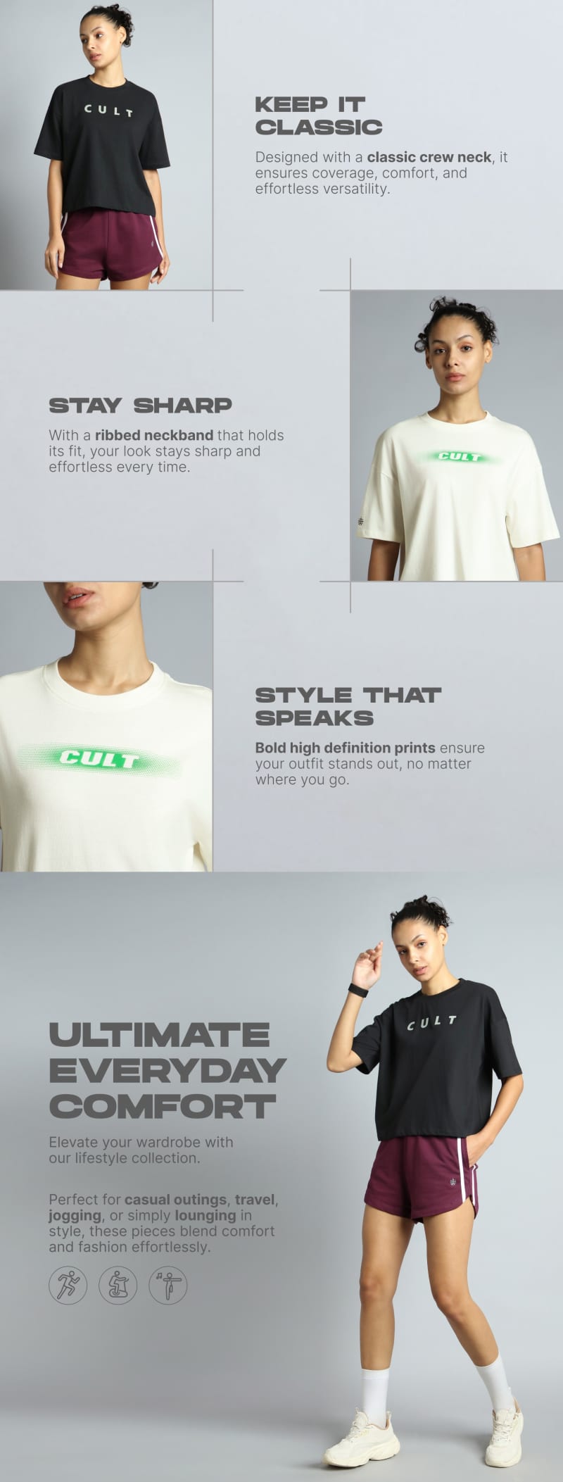 Make your basics pop with the Women's Black Tonal Branding Graphic T-shirt! Made from super-soft fabric, it delivers a smooth, breathable feel that keeps you going. The ribbed neckband adds classic structure, while the boxy crop fit gives you room to move. Finished with a high-density print that adds a subtle, elevated edge to your look.